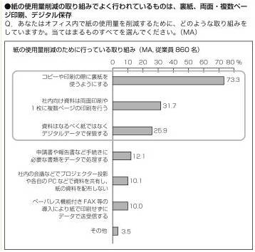 1位「コピーや印刷の際に裏紙を使うようにする」73.3%