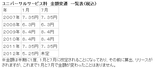 そこで再度、ユニバーサルサービス料の意味を確認すると共に、金額の変遷を一覧にしました。
