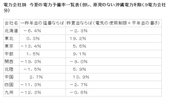 政府「エネルギー・環境会議」では、昨年(2011年)11月11日に「今後の電力需給対策について−今冬の電力需給対策及びエネルギー需給安定行動計画の概要−」という資料をその日の第4回会議資料として配布しており、その6ページ目に今夏の需給見通しを掲載しております。