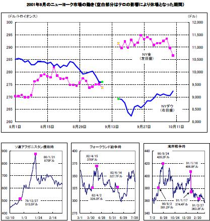 参考として、「2001年9月のニューヨーク市場の動き」、「ソ連アフガニスタン侵攻時」、「フォークランド紛争時」、「湾岸戦争時」を参照していただきたい。