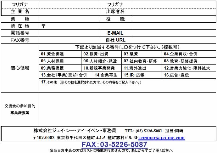 参加お申込み欄 ※下記ご記入の上、FAXにてご返信ください